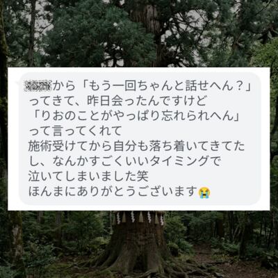 神域結界で邪魔なものが完全に遮断された状態で縁を結ぶから、想いは何にも妨げられることなく、彼の深いところへ一直線に届きます。